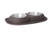PET FEEDING SYSTEM DOUBLE LOW 10" 64 OZ SS BOWLS DARK BROWN