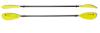 The kayak paddle has a unique take-down ferrule, that features a reinforced nylon material that can be positioned at 60 degrees left, right or inline for better control. Grooves on the ferrule prevent the buildup of sand and debris, maintaining a tight, trouble free fit. The shaft is vinyl wrapped black anodized aluminum and are ovalized at normal hand position. Paddle features a high impact asymmetrical plastic blade measuring 7 1/4" x 18 1/4".